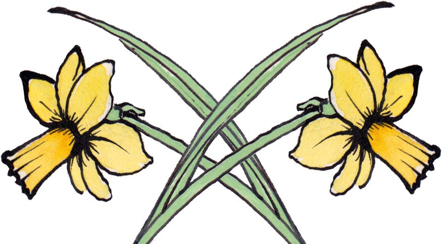 Although the daffodil was no longer seen as a harbinger of death by the early 20th century, it was still seen as bad luck to bring daffodils into your home. Mainly by poultry keepers, who believed that if you put a vase of daffodils in your home before your chickens’ eggs had hatched, there wouldn’t be any chicks that year. The same for goslings apparently.