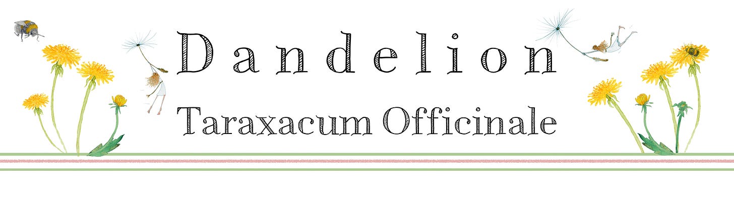 And there are many, many other names for dandelions, here are but a few: Blowball, Cankerwort, Crow-parsnip, Dindle, Doonhead-clock, Fortune Teller, Horse Gowan, Irish Daisy, Lion's Tooth, Male, Milk, Pee-a-bed, Pissabed, Priest's Crown, Puffball, Stink Davie, Swine's Snout, Wild Endive, Witch Gowan, Witches’ Milk and Yellow Gowan. (Reference: Compendium of Symbolic and ritual plants in Europe, by Marcel de Clene and Marie Claire de Jeune)