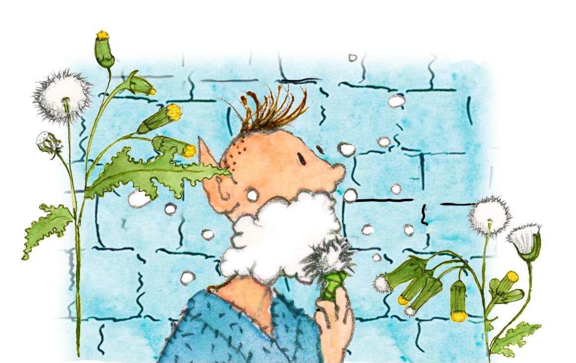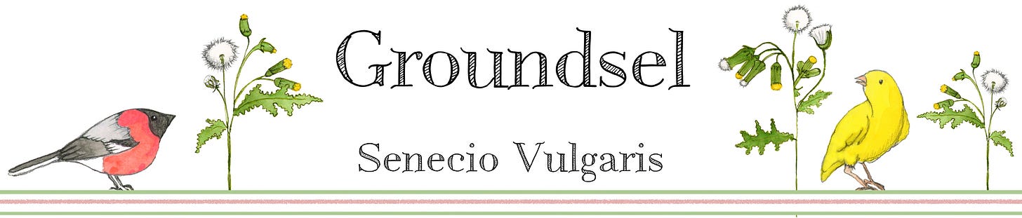 There have been many names for the plant we now commonly know as Groundsel: Groundswilly, Groundie-Swallow, Grinsel, Grundsel, Grundy Swallow and Ground Glutton - all referring to ground and consuming. On a different tack, Old Man in the Spring is still used, but my favourite of all is Gnomes Shaving Brush.